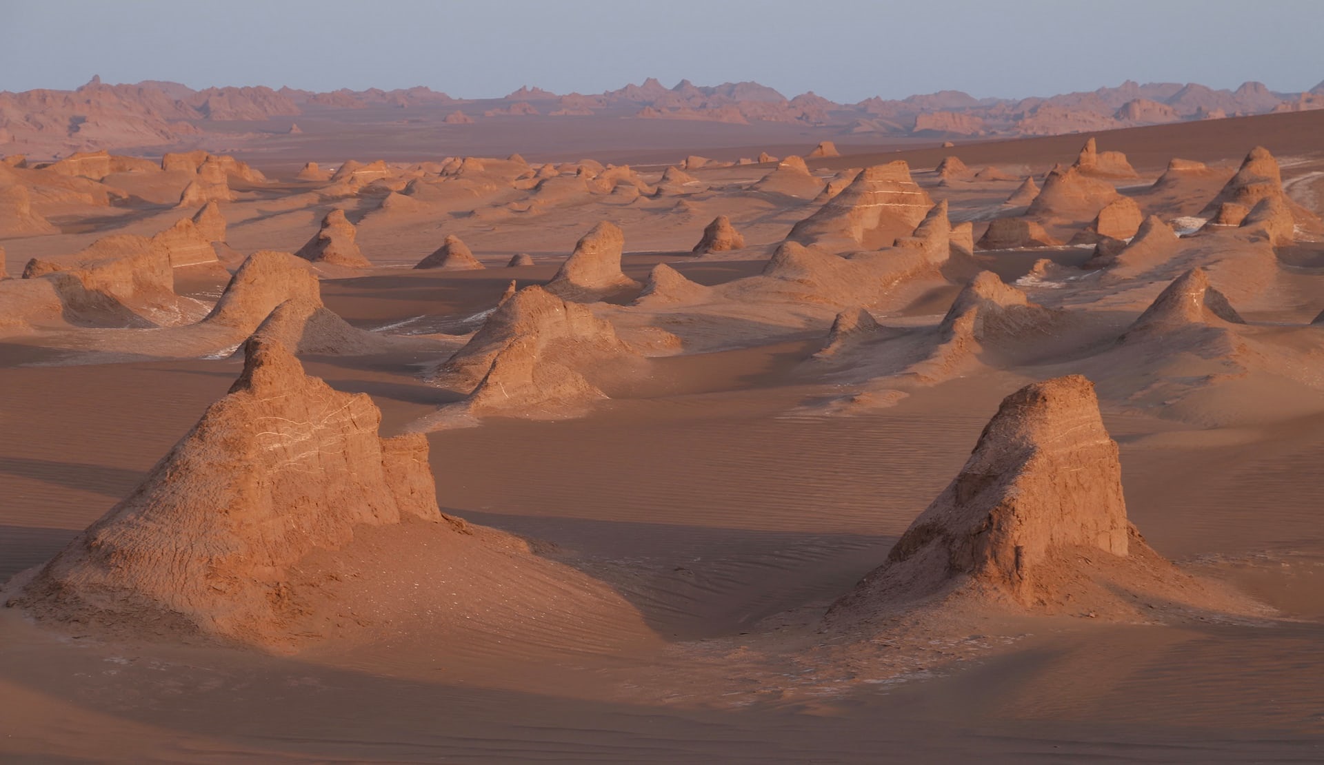 19. Lut Desert (2016): is a vast and otherworldly landscape located in southeastern Iran. Spanning an area of approximately 51,800 square kilometers, it's the 33rd-largest desert in the world and holds the title of the hottest place on Earth, with temperatures recorded as high as 80.8°C.