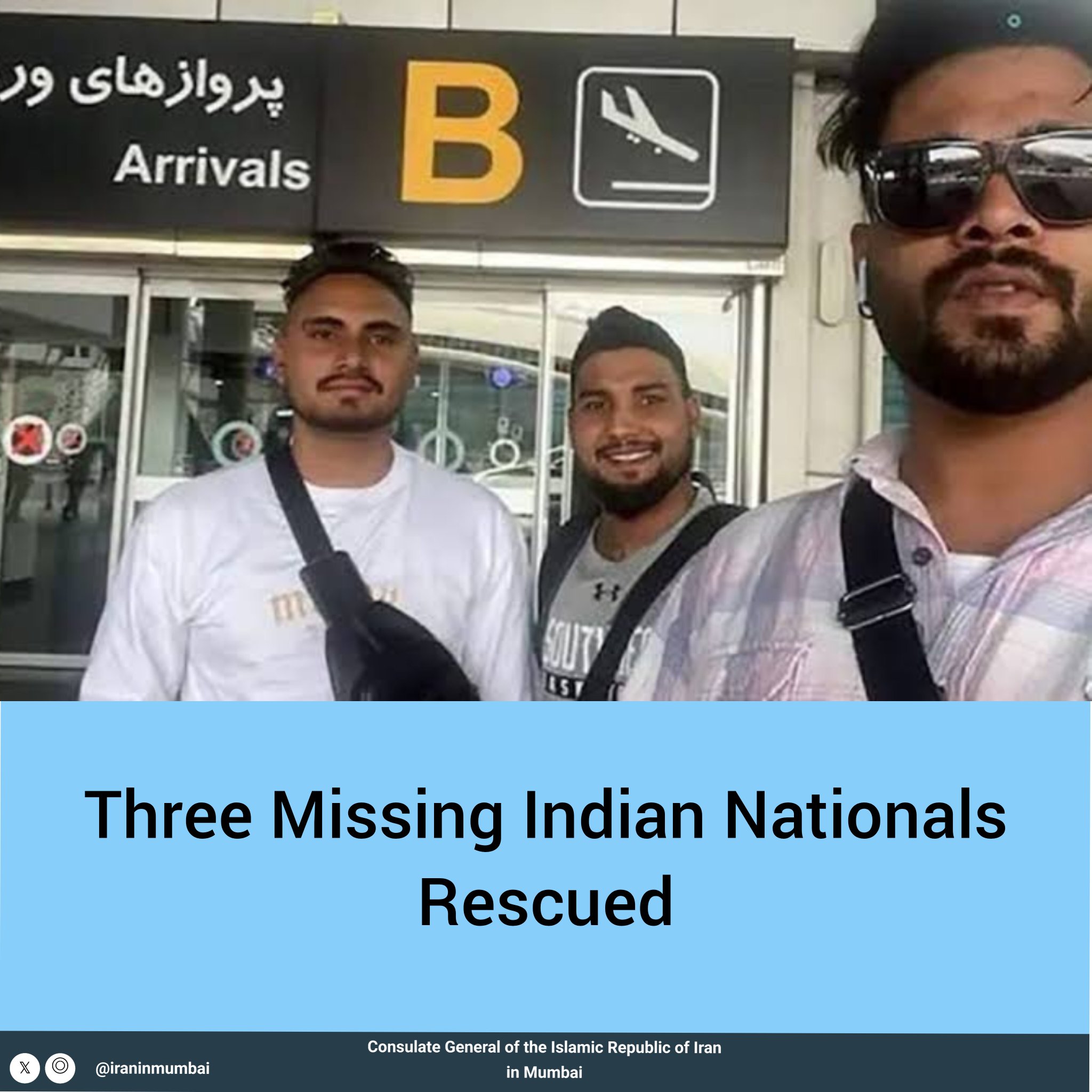 We are pleased to report the successful rescue of three Indian nationals who had gone missing shortly after arriving in Tehran Iran.