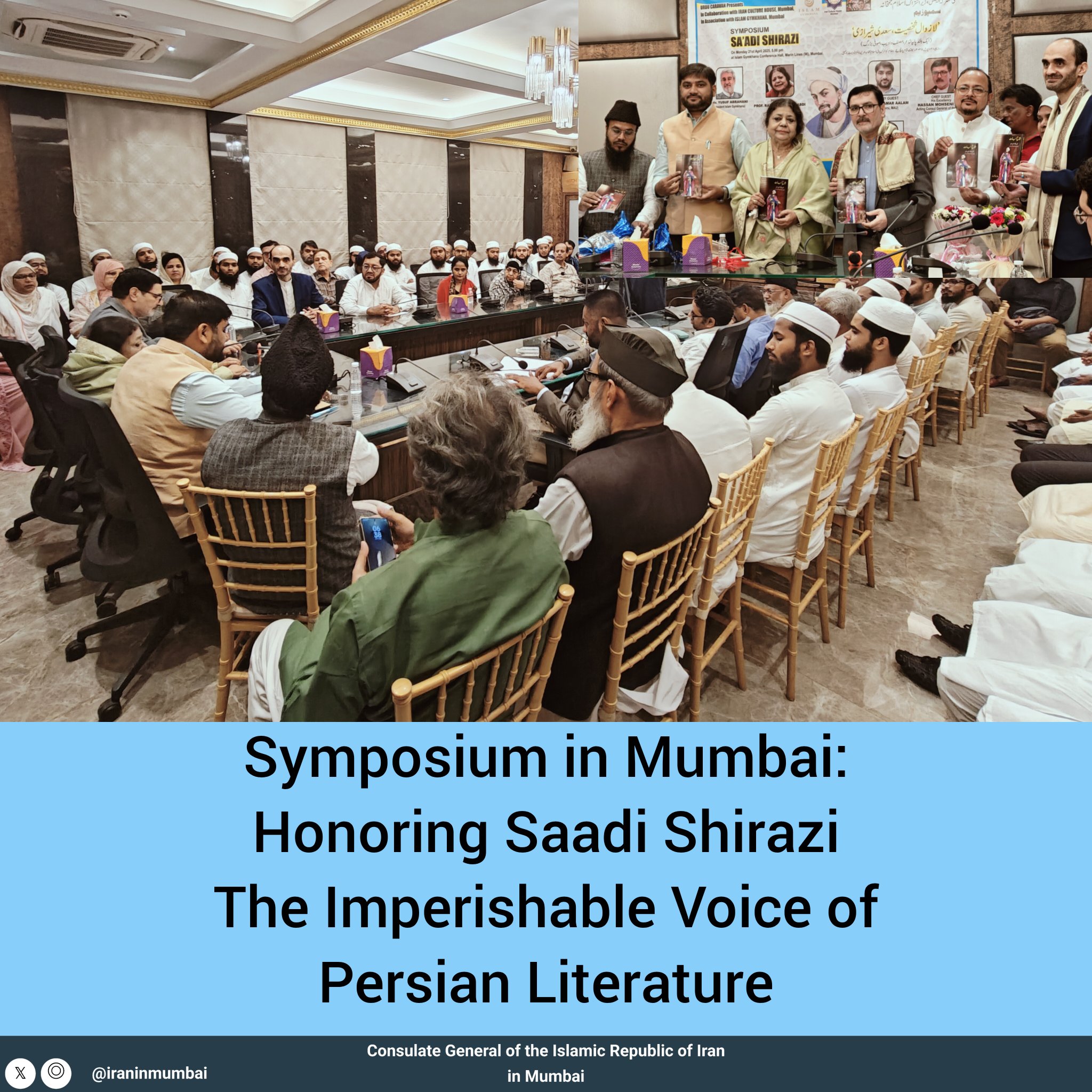 همزمان با روز بزرگداشت استاد سخن، سعدی شیرازی، سمپوزیومیبا عنوان شخصیت زوالناپذیر سعدی در اول اردیبهشت ۱۴۰۴ با همکاری خانه فرهنگ جمهوری اسلامی ایران در مومبای و مشارکت نهادهای فرهنگی هندی شامل کاروان اردو و اسلام جیمخانه در محل این مجموعه در شهر مومبای برگزار گردید.