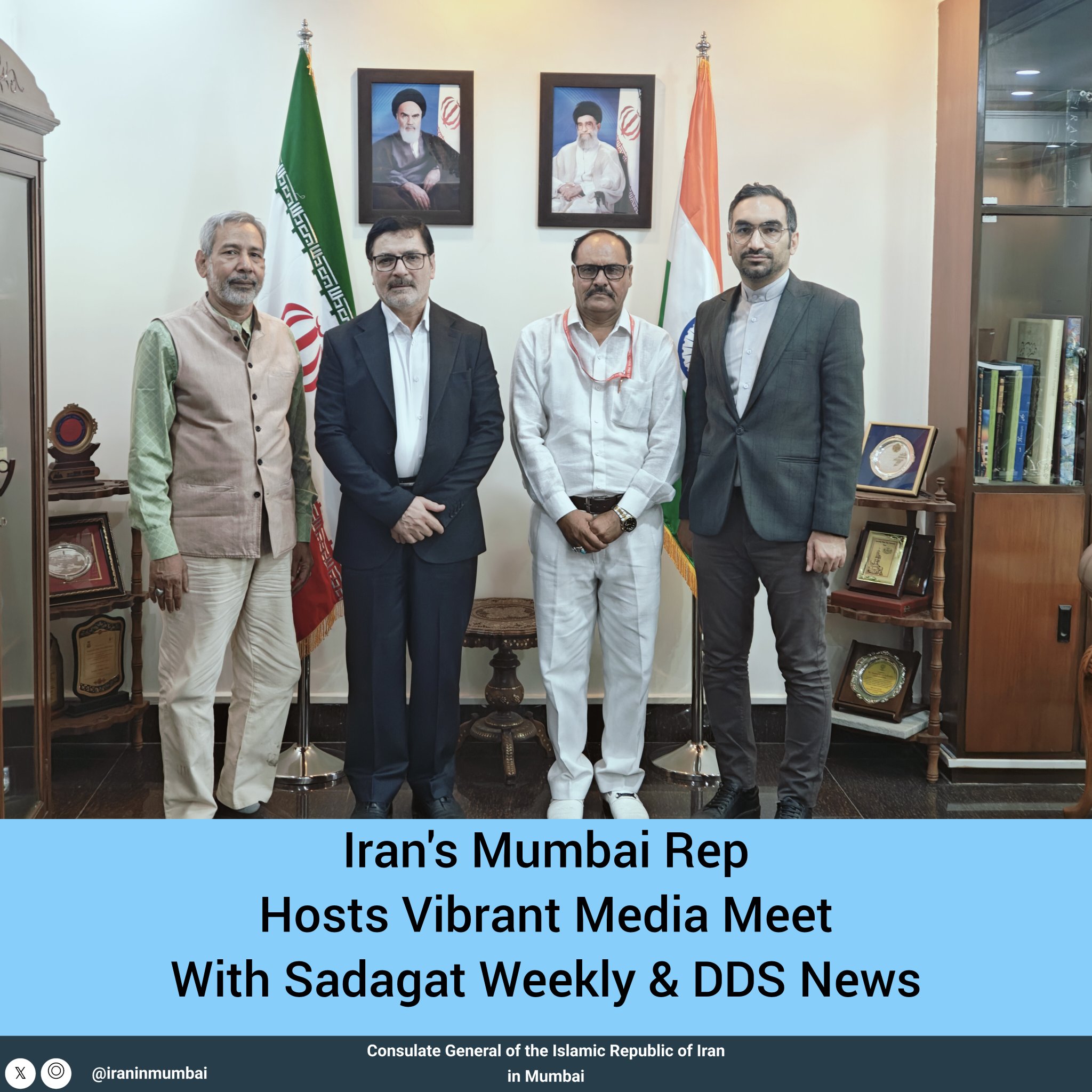 در تاریخ 9 اردیبهشت 1404، نمایندگی جمهوری اسلامی ایران در مومبای میزبان سردبیر هفتهنامه «صداقت» و نماینده تلویزیون یوتیوبی DDS News بود. این دیدار با حضور سرپرست نمایندگی و کارشناس دیپلماسی عمومیبرگزار شد.